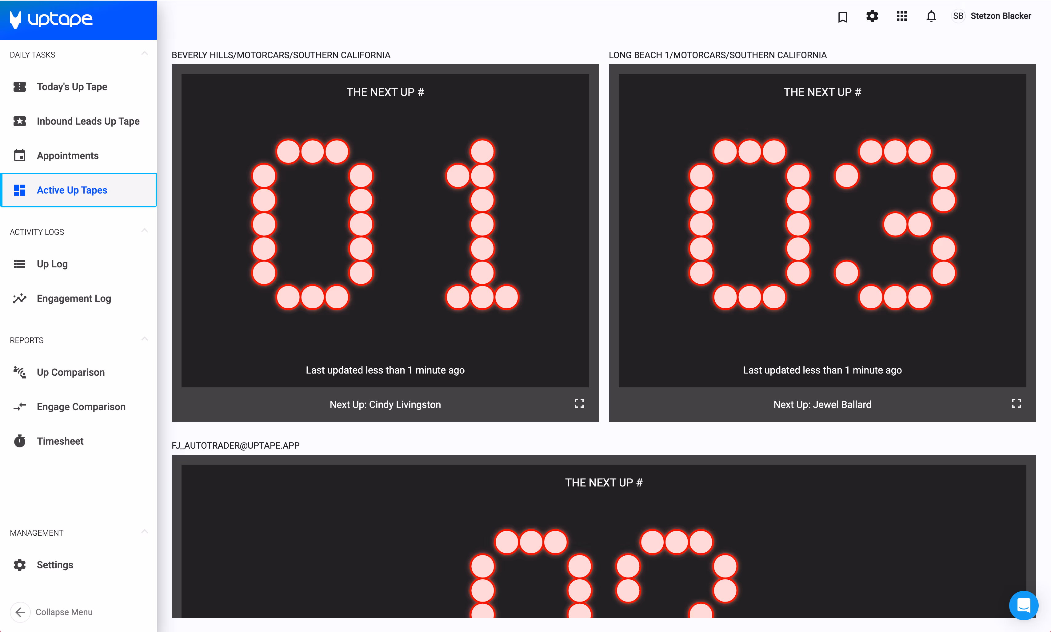 The Active Up Tapes screen is used to monitor the progress of multiple up tapes at the same time. This is a handy tool for any manager that oversees multiple locations or departments.